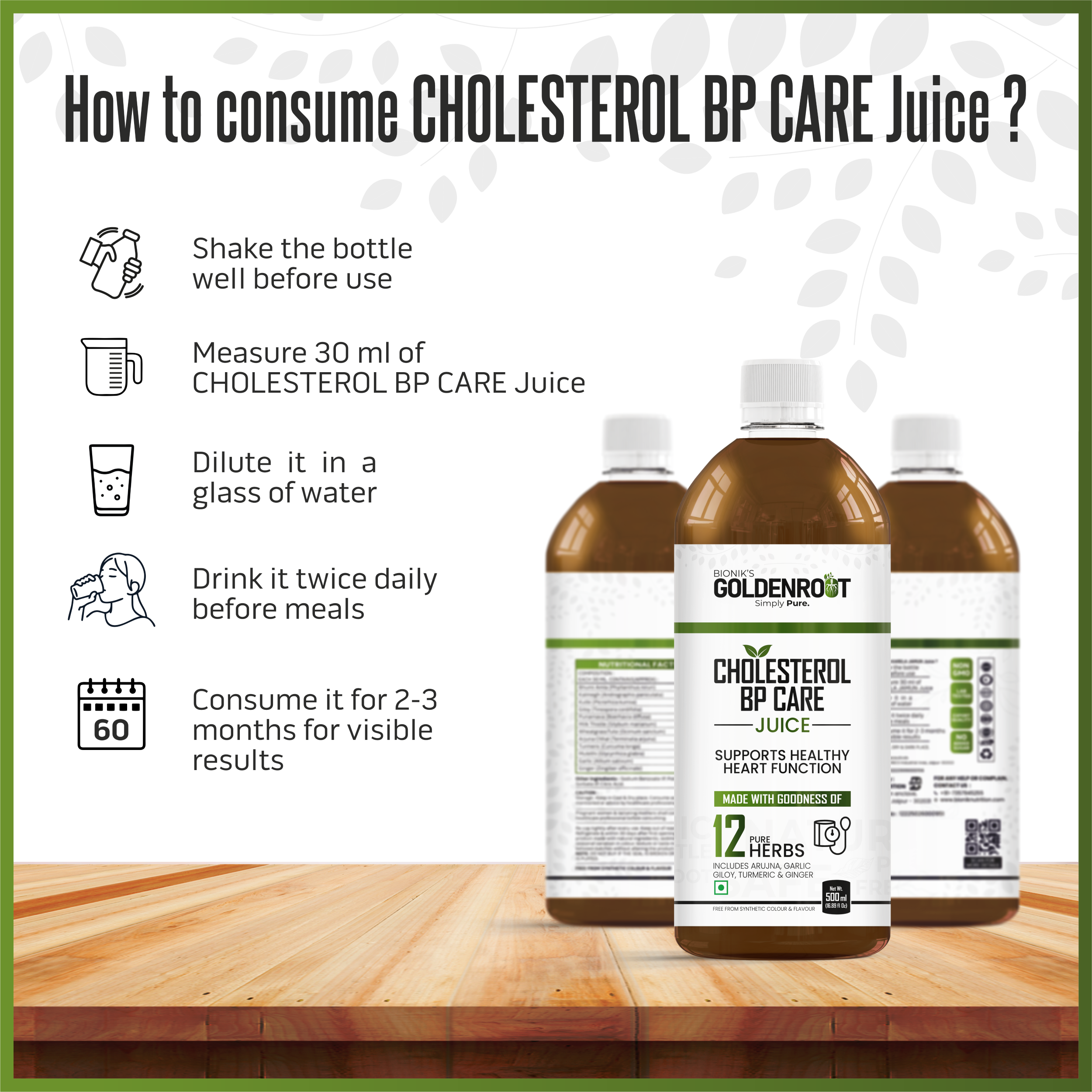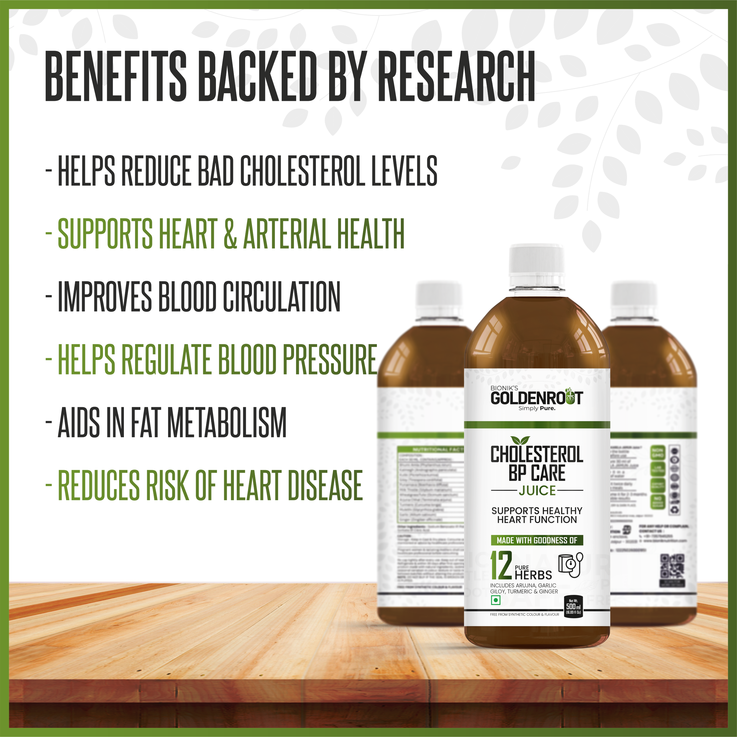 Cholesterol & BP Care Juice by Bionik GoldenRoot | Ayurvedic Heart Health Formula With Arjuna, Garlic, Wheatgrass & 12 Herbs | Supports Healthy Cholesterol Levels & Blood Pressure | 500 ml