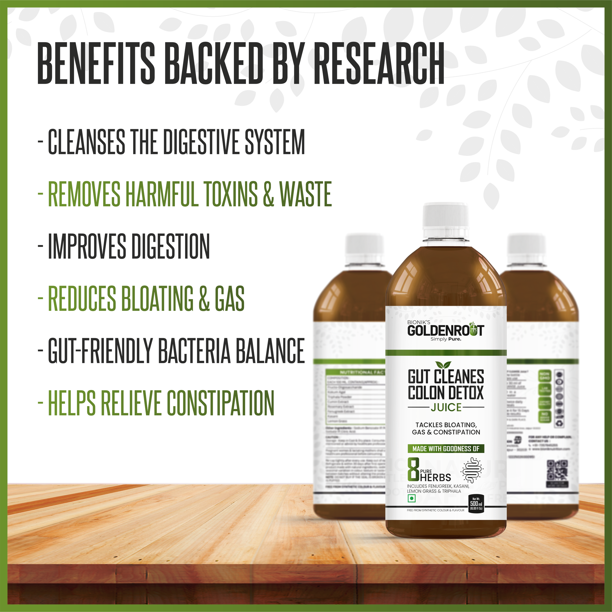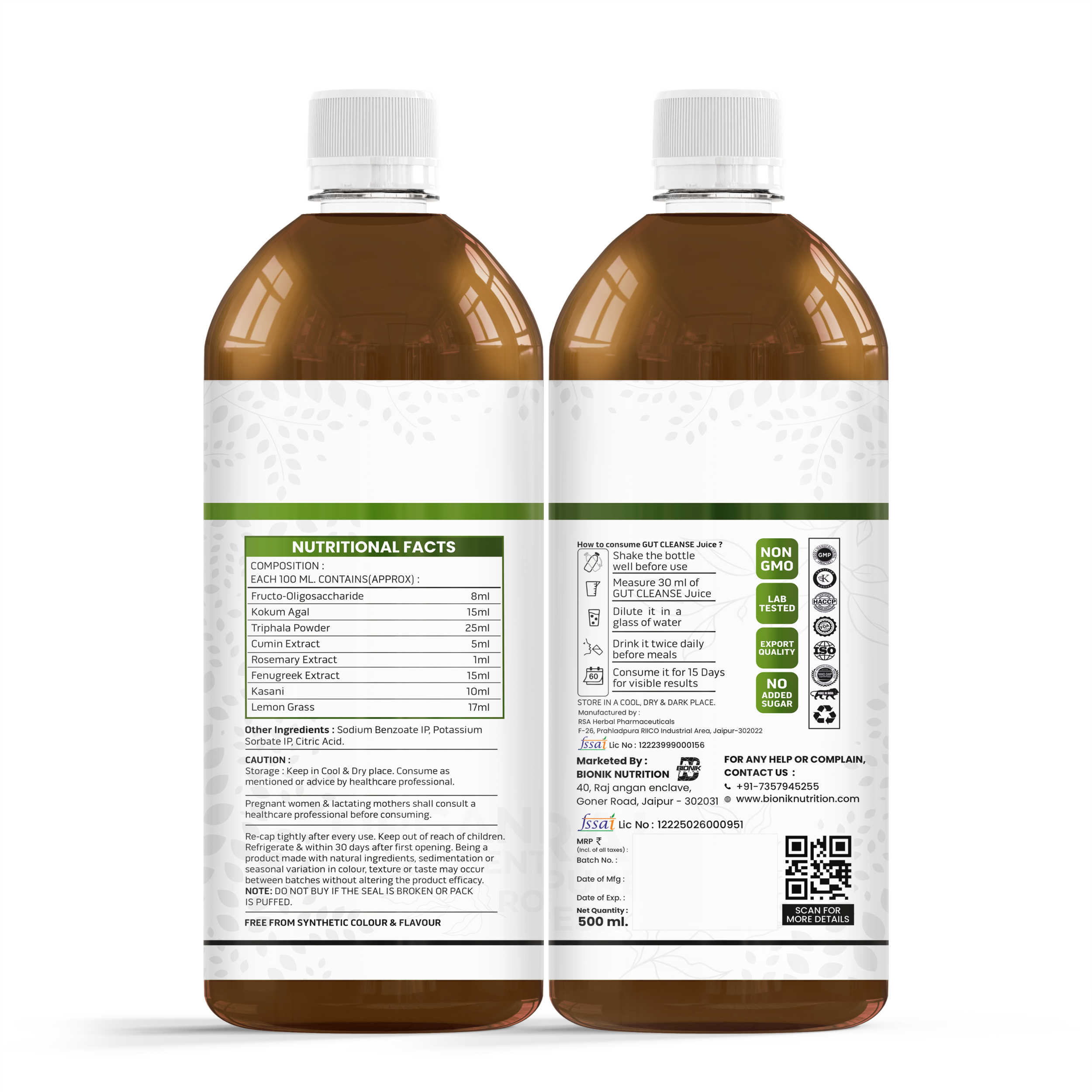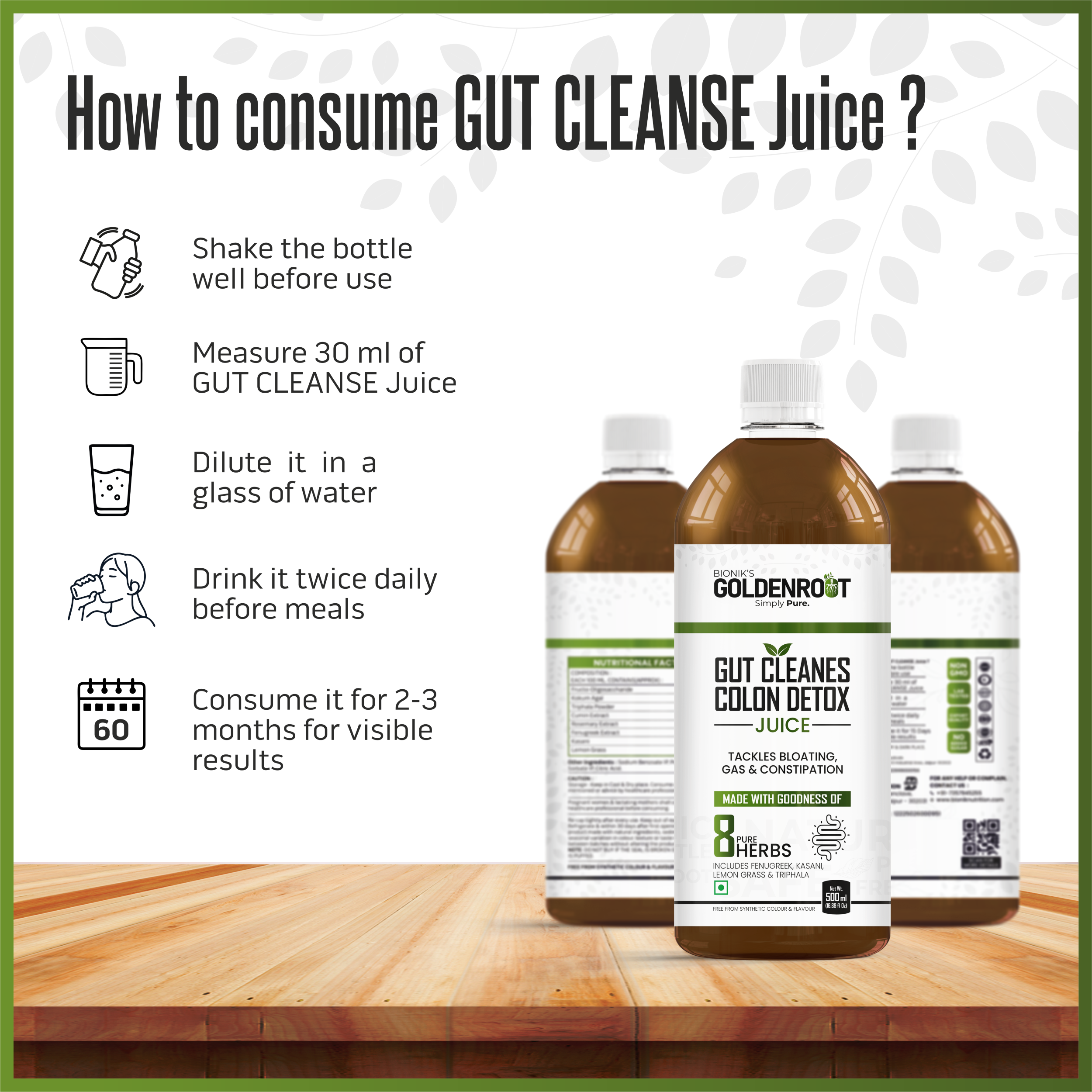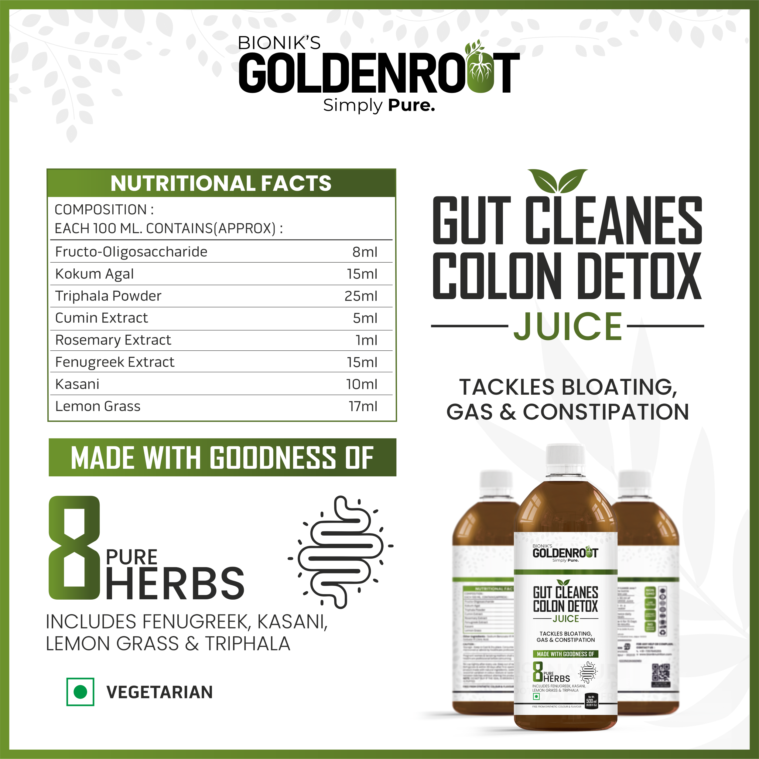 Gut Cleanse Colon Detox Juice by Bionik GoldenRoot | With Triphala, Kokum, Lemongrass & Digestive Herbs | Relieves Gas, Bloating & Improves Digestion