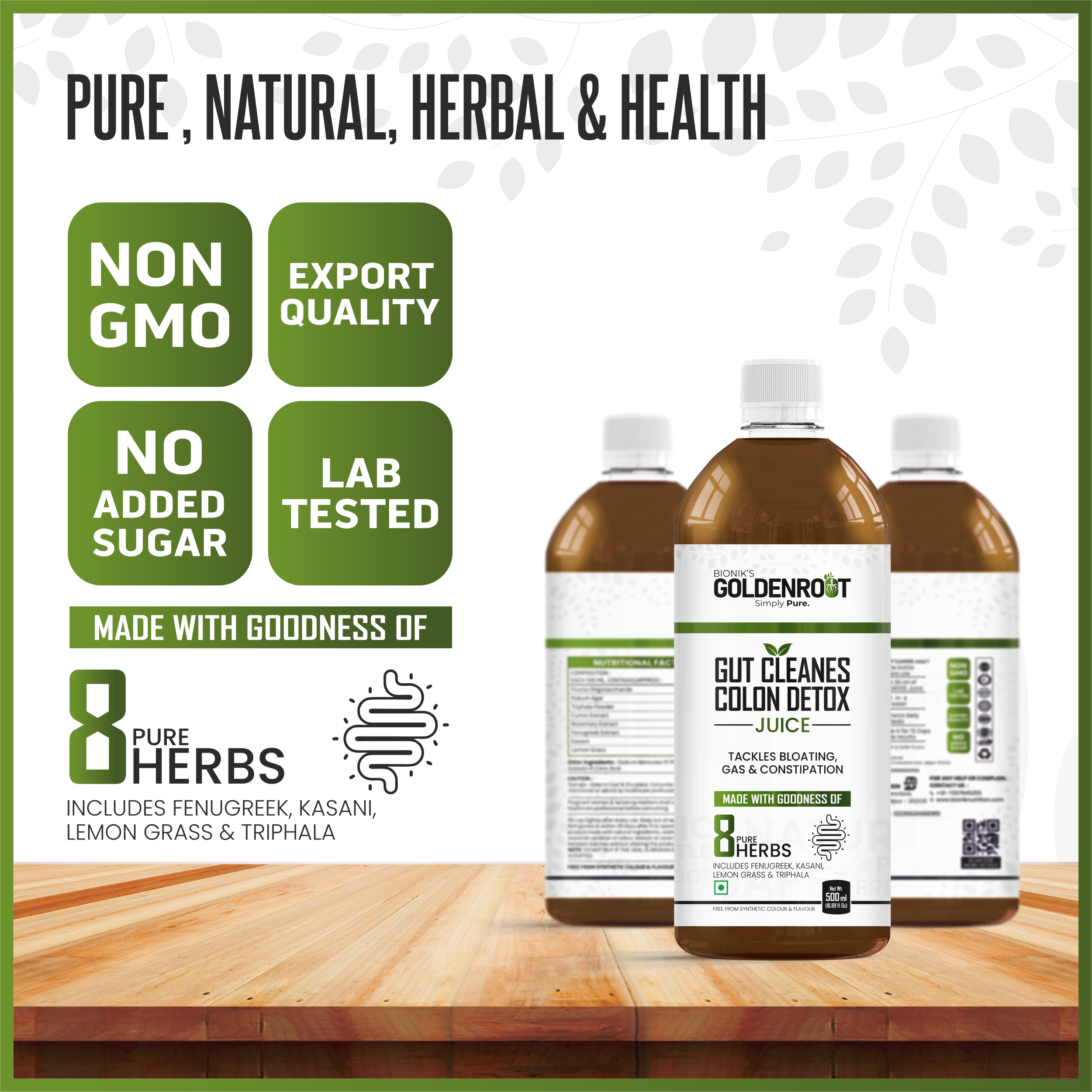 🌿 Bionik GoldenRoot Gut Cleanse & Colon Detox Juice – Ayurvedic Formula for Digestive & Gut Health