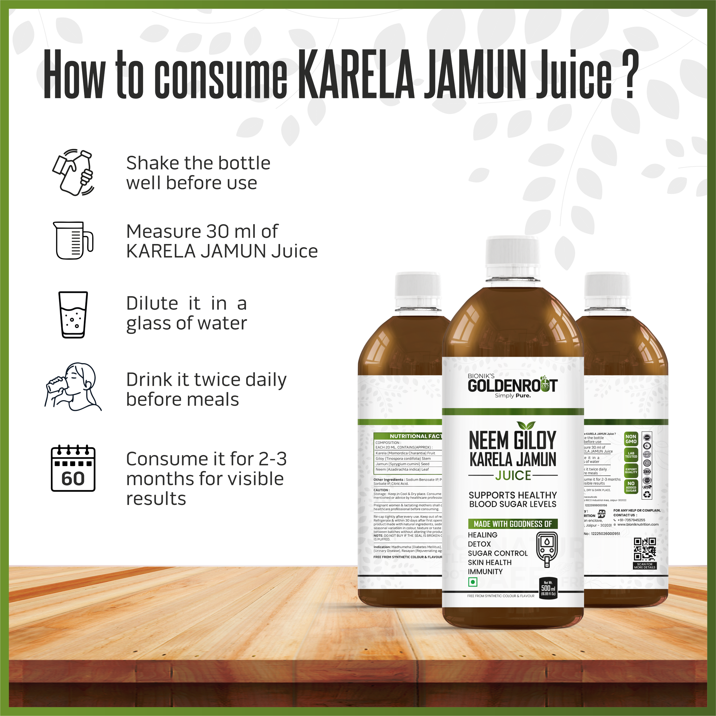 Neem Giloy Karela Jamun Juice by Bionik GoldenRoot | Natural Sugar Control, Detox & Immunity Support | With 4 Potent Ayurvedic Herbs